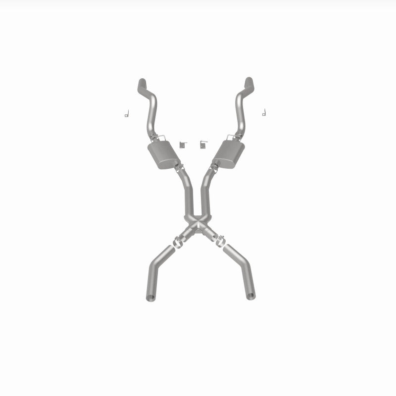 The MagnaFlow Street Series Crossmember-Back Performance Exhaust System 15852 brings enhanced engine sound and dyno-proven performance to your muscle car with a healthy helping of our deep, resonant signature exhaust note at Aggressive exterior and Moderate interior sound levels. Thanks to its durable, corrosion resistant stainless steel design, this exhaust system will handle whatever tarmac you decide to leave your mark on. This performance exhaust kit features a crossmember-back layout designed to replace your exhaust system from the crossmember on back. With its fast-flowing, mandrel bent 3in. main piping and 2 Straight-Through mufflers ending in a Dual Split Rear exit that you can enhance with tips of your choosing, your muscle car will be sounding as awesome as it looks. Extensive 3D scanning during development has resulted in a direct-fit design that you can easily install yourself. 15852 is produced using CNC precision robotic manufacturing techniques and is backed by MagnaFlow's limited lifetime construction warranty.